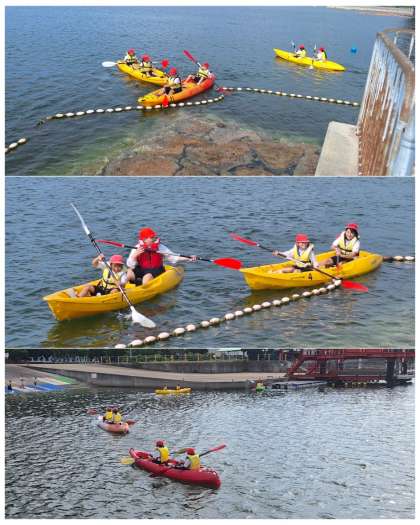 カヌーに2人で乗って息を合わせて前に進みましょう。