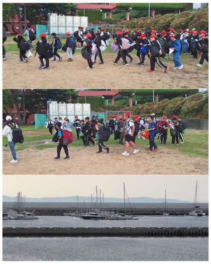 海の活動が終わり部屋に行き避難訓練を実施しました。