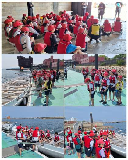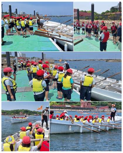 カッターに乗り込みます。