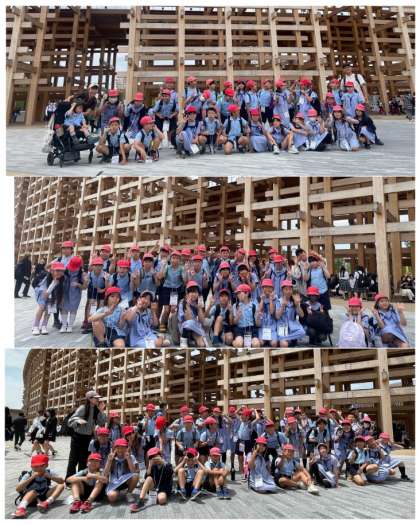 入場して、大屋根リングを背にクラス写真を撮りました。
