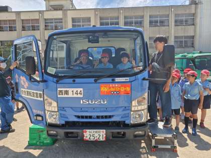 パッカー車も来ていて、ゴミの回収方法やパッカー車の仕組みについても学びました。