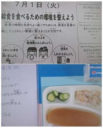 今日の献立は、鶏肉のから揚げ、ハムと東岸の中華スープ