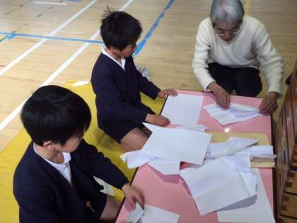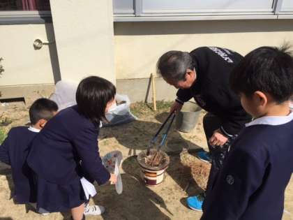 朝からたくさんの地域の方が講堂に来てくれました。3年生の社会科歴史学習に協力していただきました。地域の地図を使って本校ができたころの様子を教えていただきました。また、当時の遊びについて「こま」「おはじき」「紙ひこうき」「竹とんぼ」などを実際に教えていただきました。さらに外で七輪を使って炭の火おこし体験もさせていただきました。ほんとうにありがとうございました。