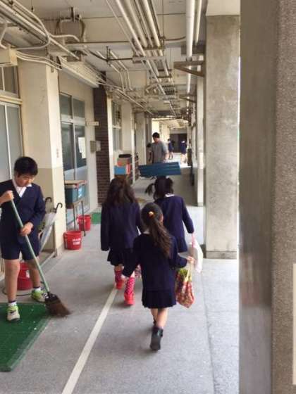 新6年生と新2年生が登校し、明日の入学式の準備をはじめました。