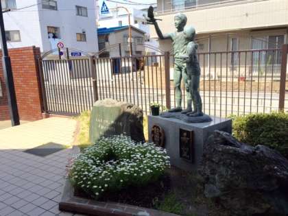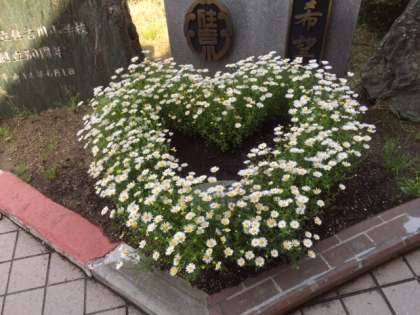 午後から暖かくなってきました。正門横の希望の像の前のハート型花壇がすくすくと育っています。