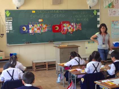 1年生がこいのぼりをつくっています。