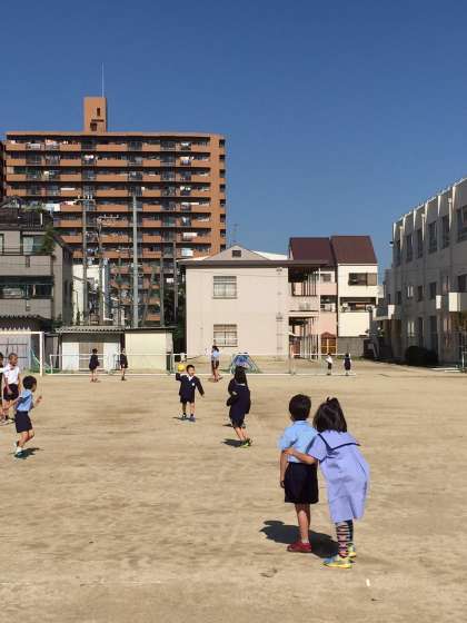 子どもたちは登校後すぐに運動場で元気に遊んでいます。