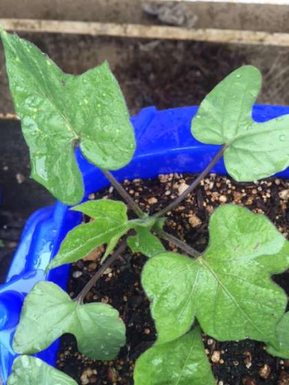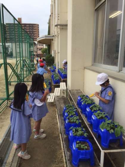 1年生が育てているあさがおも大きな本葉が出てきました。