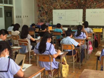 住吉川・住之江・清江の3小学校の6年生が真住中学校に集合しました。全教科授業体験です。自分が学びたい中学校の教科を選択して、体験学習をしました。
