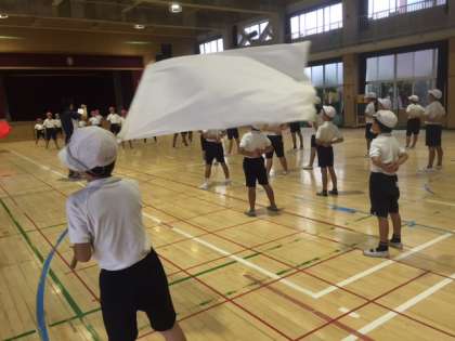 講堂に響きわたる元気な声が出ています。