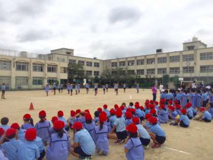 3連休・台風休みで久しぶりの学校となりました。今朝のニコニコ集会は運動会の応援団のリハーサルをしました。
