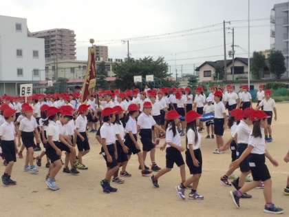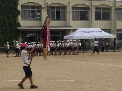 運動会の全体練習がはじまりました。今朝は開会式のリハーサルです。