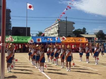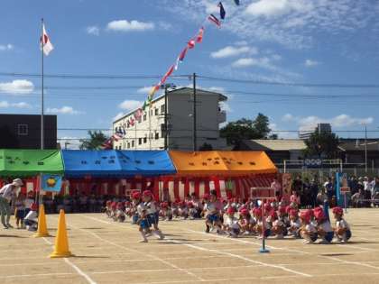 体育の日、運動会日和です。恒例、おとなりの加賀幼稚園運動会が本校の運動場でありました。次年度本校入学予定の元気な子どもたちが大活躍です。