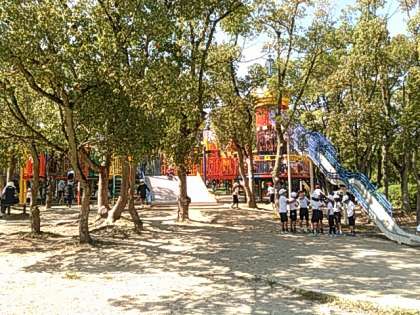 遠足日和。大泉緑地でどんぐりを集めたり、遊具で遊んだりしました。
