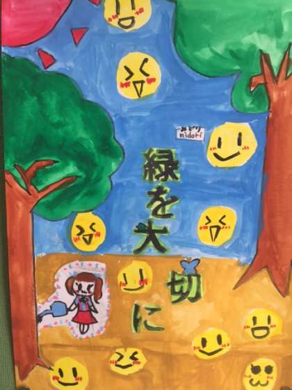 5年生が図画工作科で啓発ポスターをつくりました。子どもたちの思いや願いが伝わってきます。