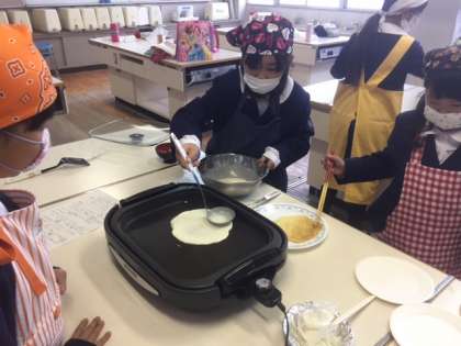ハッピー家庭科クラブではクレープをつくっていました。芸能クラブでは和太鼓の練習をしていました。室内スポーツクラブではドッジボールをしていました。みんな楽しそうです。