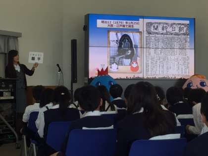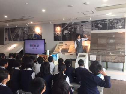 社会科の情報学習で朝日新聞大阪本社に見学に行きました。記者の取材から印刷・配達まで、新聞ができるまでの過程を学習しました。