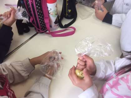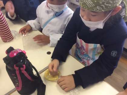 学習園でできたサツマイモでスイートポテトをつくっています。