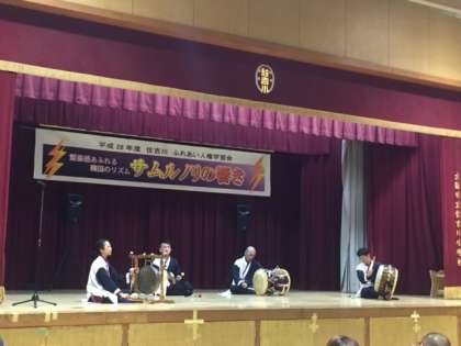 そして、隣国の文化にふれあう「サムルノリの響き」がありました。打楽器演奏でつながり、互いにリスペクトしあう、すばらしい人権学習会になりました。