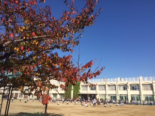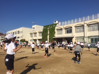 たくさんの保護者に見守られながら、なわとびを楽しんでいます。