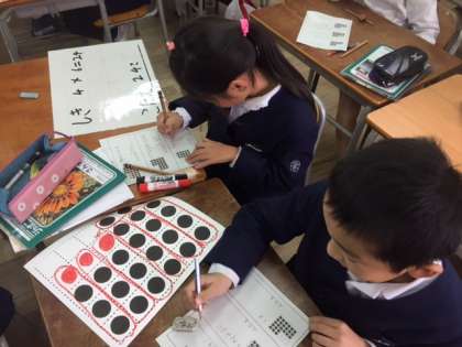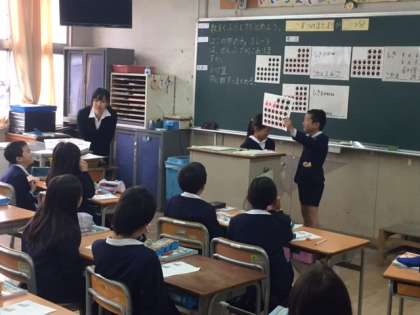 今朝2時間目、2年2組で算数の研究授業がありました。九九を使っていろいろな計算の仕方を話し合い、発表することができました。