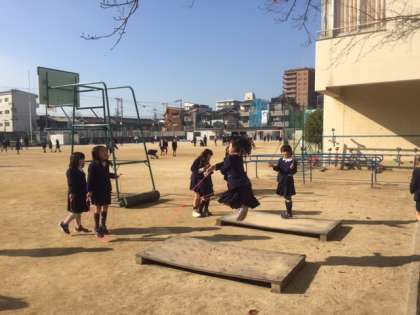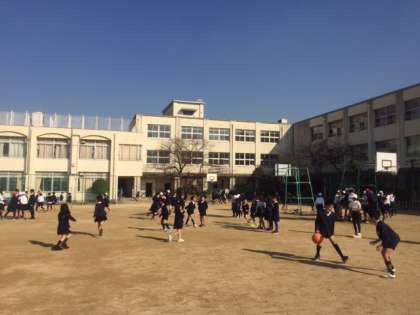 12月にしては温かい好天が続いています。休憩時間になると子どもたちは運動場に飛び出して元気に遊んでいます。なわとび練習板の前にも列ができ、自分の技にみがきをかけています。