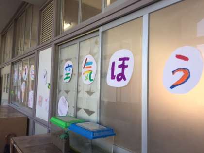 あいさつカードのパズルが完成しました。明日は、いよいよ「ニコニコ交流会」です。各教室でイベントを工夫・準備しているようです。多数ご参加ください。なお、明日の土曜授業では運動場に自転車置き場を仮設します。自転車で来校される方は、南門(プールと給食室の間)から入場してください。