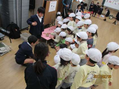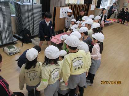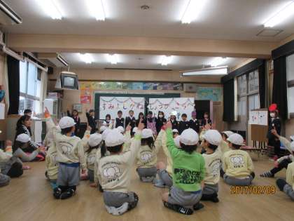 今日は愛和保育園の子どもたちが来てくれました。入学前のスタートアップカリキュラムです。1年生の子どもたちがクイズやゲームで住吉川小学校の様子をわかりやすく伝えていました。