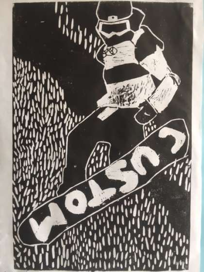 5年生の教室・階段・廊下などに躍動感あふれる作品が掲示されています。