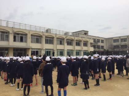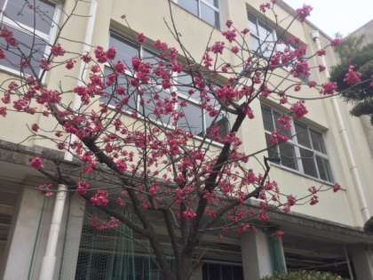 休み明け、梅の花もずいぶん咲きそろい増えてきました。全校朝会でスタートの朝です。
