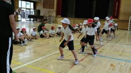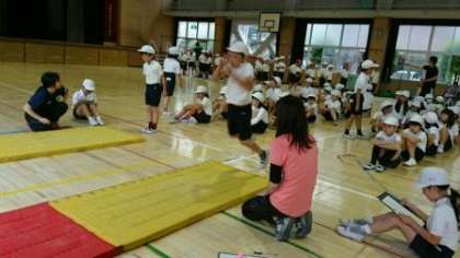 今日実施したのは、立ち幅跳び・反復横跳び・50メートル走・ソフトボール投げです。