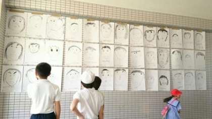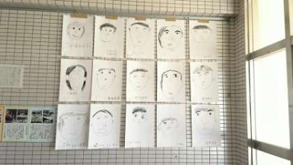 1年生から6年生まで順にリレーをしながら仕上げた似顔絵。