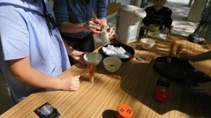 講師の先生にも来ていただいて、お茶のたて方やマナーを教えていただきました。