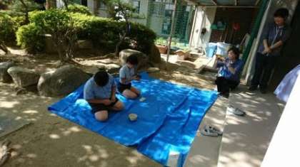 今日のクラブの時間、茶道クラブでは野点をしました。