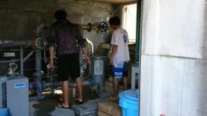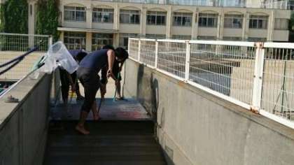 プール掃除の様子を見ていた子ども達は、「水がキラキラしてる」と喜んでいました。