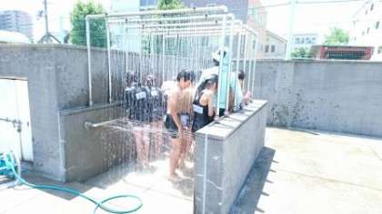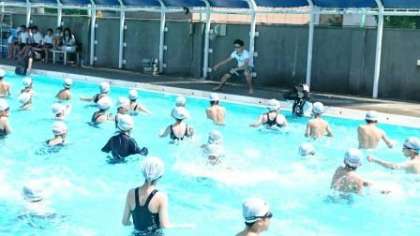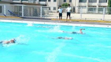 今日はプール開きで、4年生と6年生がプールに入りました。