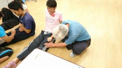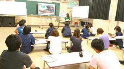 DVDを見た後、いざという時にだれでも使えるように練習用のエピペンを使って練習しました。