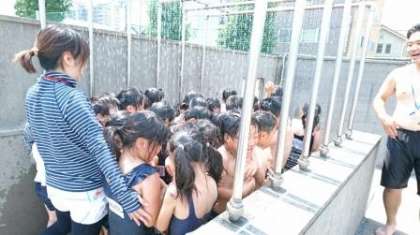 先生の声かけに子ども達はごしごしと言いながらシャワーをしました。