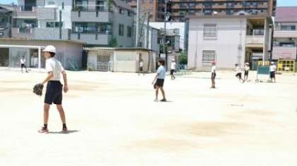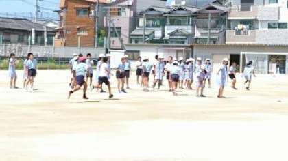 6年生の運動場に出てきて、2組はリレーとサッカー、1組はソフトボールを楽しんでいました。