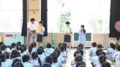 3年生は、「友達ができたこと」「校内漢字検定でがんばったこと」「理科でチョウをしっかり観察し、図画工作科でチョウの絵を描いてよかったこと」を発表しました。