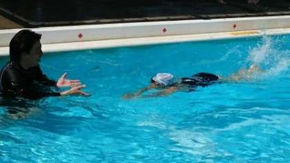 水泳の特別練習に参加している子ども達は、先生達にたくさんアドバイスをしてもらって一生懸命泳いでいました。