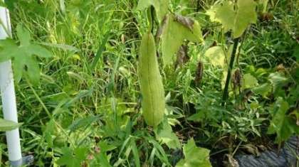 ヘチマは大きな実がついているし、トウモロコシはつぼみがついてきました。