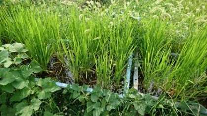 学習園のヘチマ・トウモロコシ・イネなどが、グングン育っています。