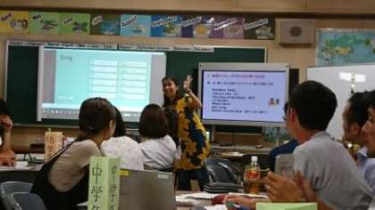 2学期からスタートする英語の学習に備えて、子ども達にどのように指導していくのか講師の方から具体的に教えていただきました。