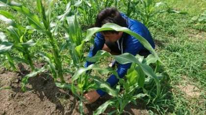 今日は、トウモロコシの余分な花芽を摘んでくれていました。