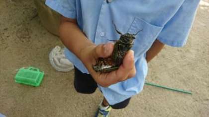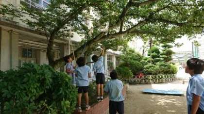 毎日のように、いきいきで登校している子ども達がセミとりをしています。