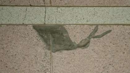 廊下を補修した跡が、うさぎさんの形をしていました。
