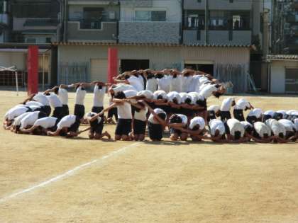 6年生の練習の様子です。集団演技『前へ 〜歴史を越えて行け〜 』