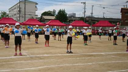 お馴染みの曲にのって、色とりどりのポンポンを手に持って踊りました。