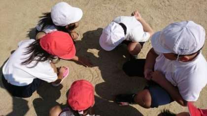 準備運動の後、今日のゲームの作戦を立てたり(写真上)、グループごとに練習したり(写真下)していました。